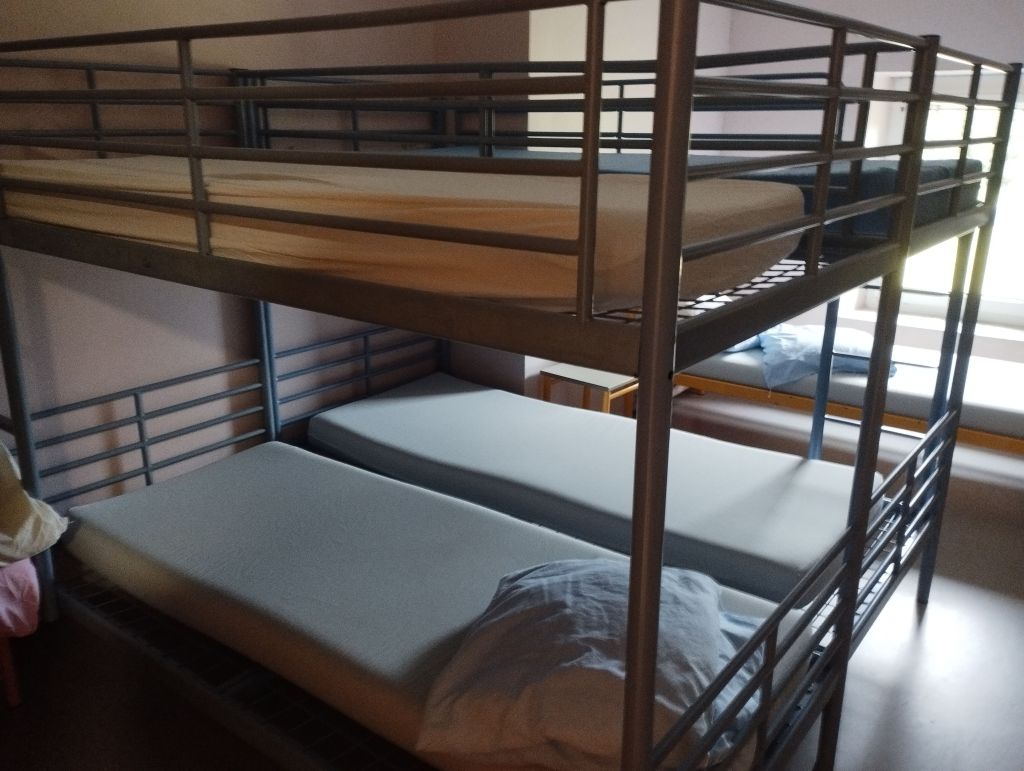 Le dortoir est constitué de chambres de 4 à 8 personnes, avec lits simples ou superposés. Il faudra amener des draps, une couette/sac de couchage et une taie d’oreillers.